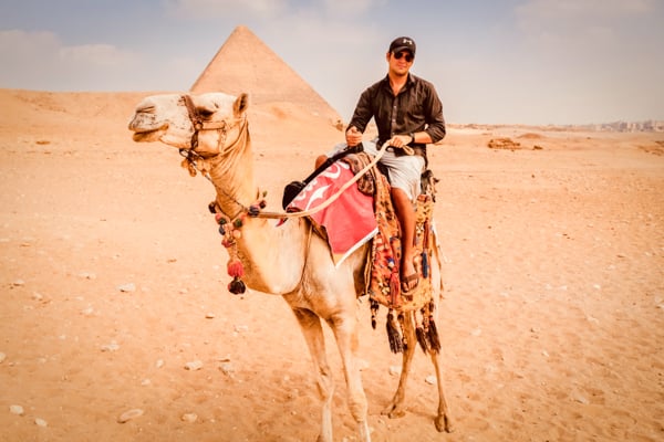 - β’ Riding a camel to the Great Pyramids of Giza in Egypt,